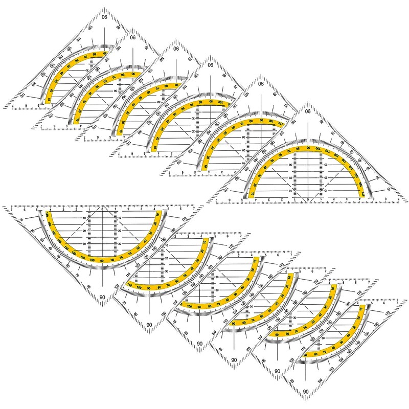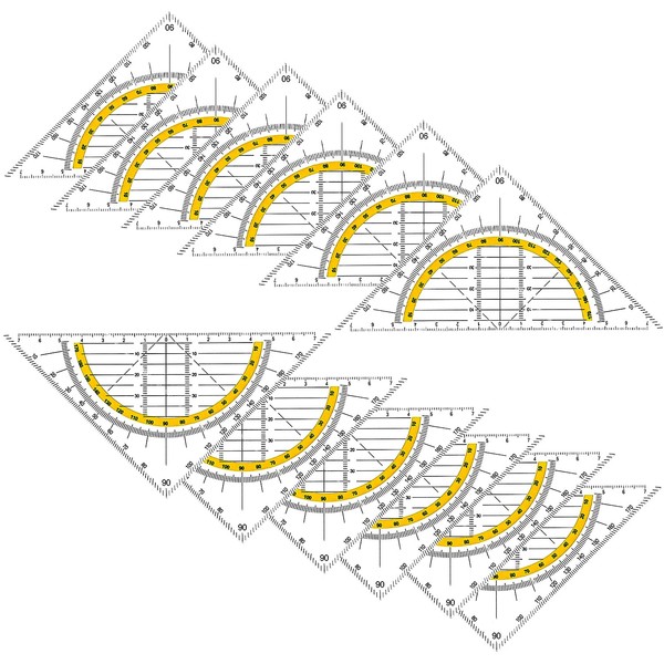 - Package: you will receive a set of 12 set squares made of plastic with colourful background scales for lengths and angle measurement, the quantity is enough for daily use.