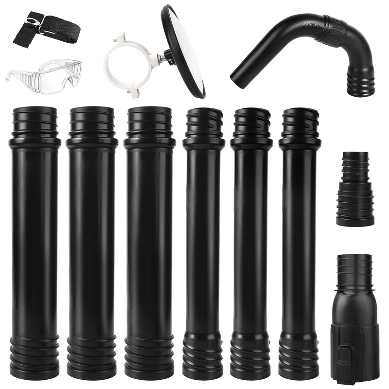 - Complete Gutter Cleaning Kit: Includes 6 extension wands, a 360° adjustable nozzle, reflector, connector, protective glasses, and a shoulder belt, allowing you to extend up to 9.25 feet, providing everything needed for reliable and long-lasting gutter maintenance