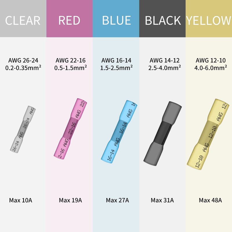 - High Quality: Heat shrink butt connectors use a heavy-duty copper core, strong crimp, higher conductivity.