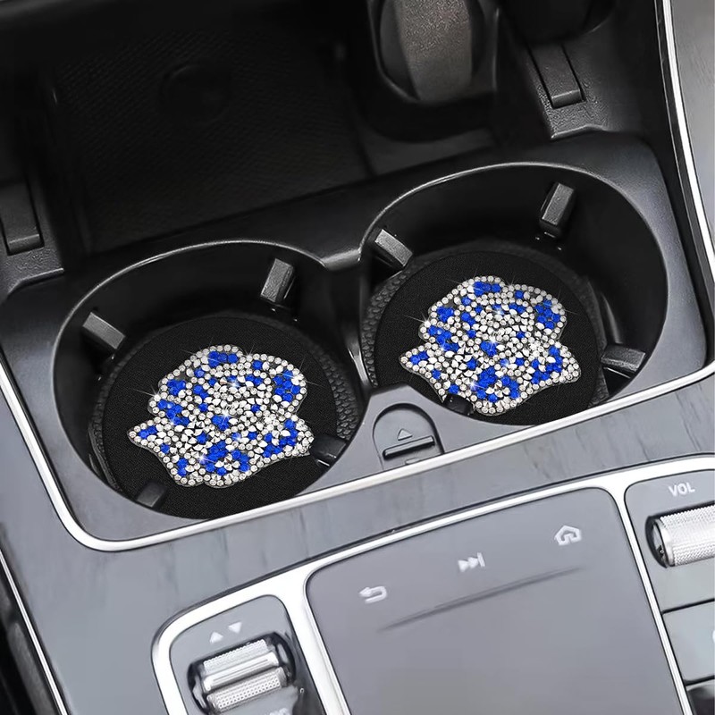 zipelo Rose Car Coasters, 2 Pack Bling Insert Cup Holder Coaster with Crystal Rhinestone, Universal 2.75 Inch Anti-Slip Shockproof Auto Drinks Cup Mat, Cute Car Accessories Decor for Women (Blue)