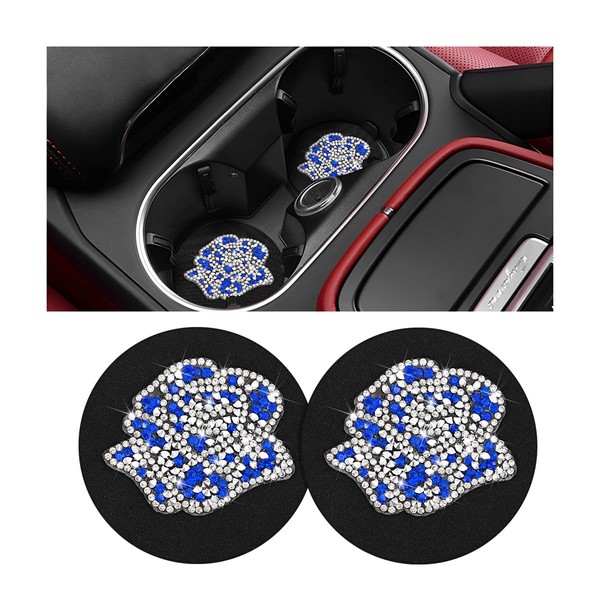 zipelo Rose Car Coasters, 2 Pack Bling Insert Cup Holder Coaster with Crystal Rhinestone, Universal 2.75 Inch Anti-Slip Shockproof Auto Drinks Cup Mat, Cute Car Accessories Decor for Women (Blue)