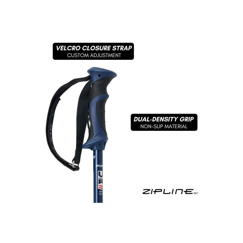 - “ZIP TOUCH” DUAL DENSITY GRIP - Our signature “trigger finger” ZipGrip is built with thermoplastic (TPU) and contours to your hand, preventing your gloves from slipping. Velcro Straps are easily adjustable on the fly. CARBIDE TIP - Tough and sharp carbide Zip Tip with teeth allows for precise pole plants and secured grip in any condition.