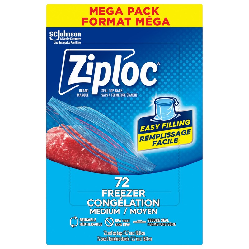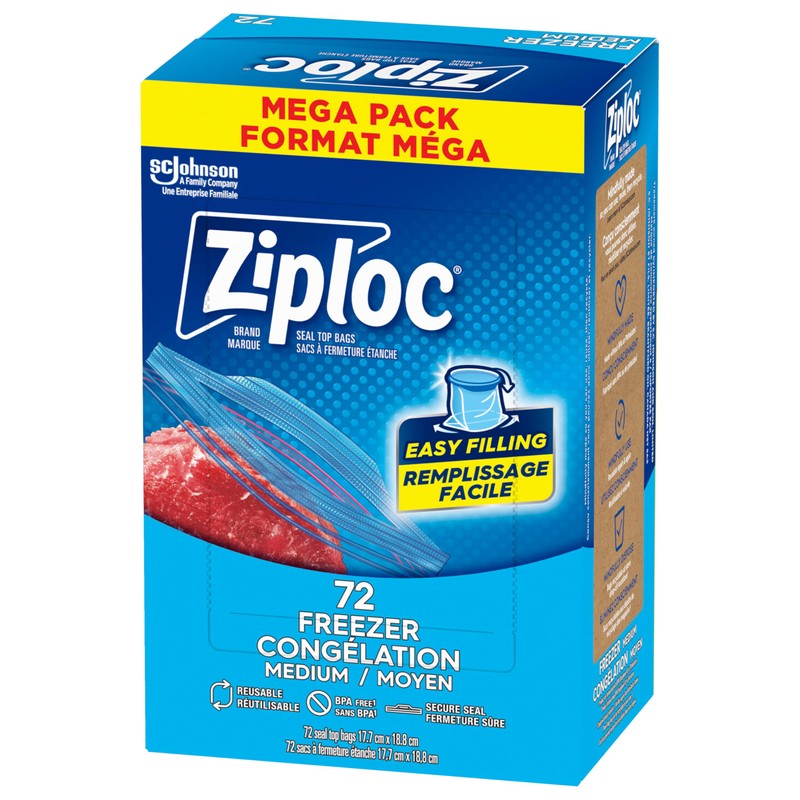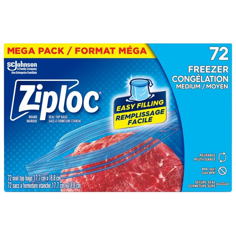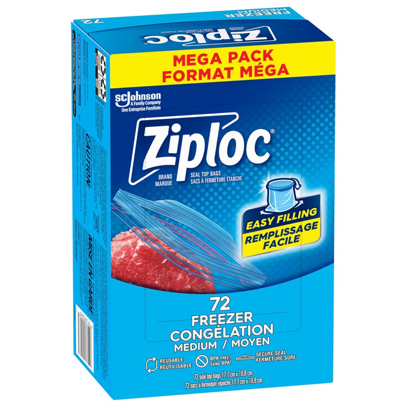 - REDUCE FOOD WASTE: Ziploc Grip 'n Seal technology provides freezer protection from freezer burn to minimize waste. Each box contains 72 medium Ziploc Bags, approximately 17.7cm x 18.8cm.