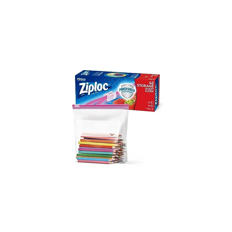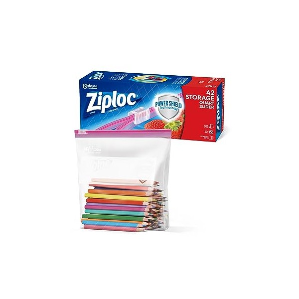Ziploc Quart Food Storage Slider Bags, Power Shield Technology for More Durability, 42 Count