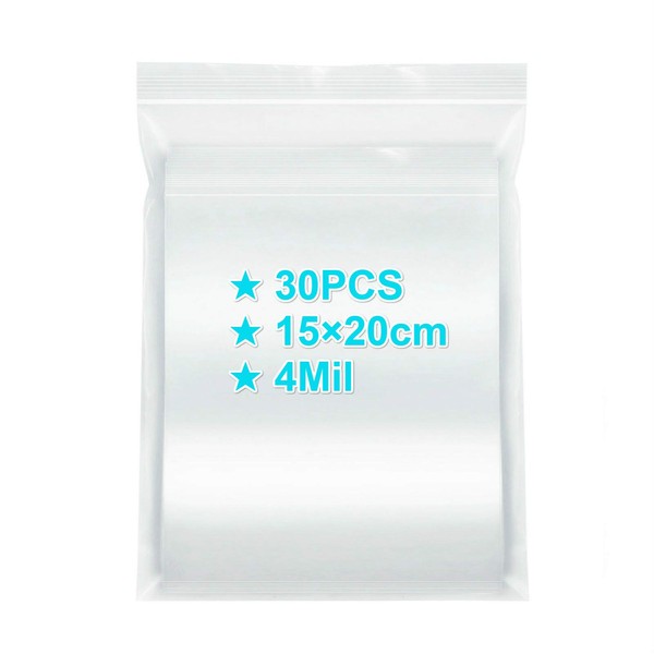 Ziplock Bags 15×20cm, 30PCS, 4 Mil Extra Thick Medium Size Clear Plastic Resealable Grip Seal Bags with Lock Seal Zipper, Storage Pouches for Jewelry Sandwich Food Mask Incense Packaging
