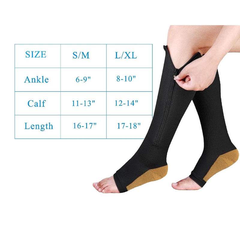 - Zipper Design easy to put on and take off.Open-toe zipper compression socks will be perfect fitting on your leg and feet, have more flexibility and adjustable space