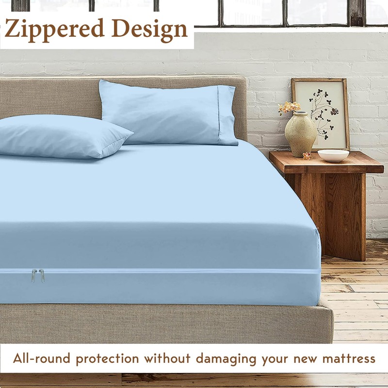 DURABLE WRINKLE RESISTANT: The Sky Beddings zipper fitted sheet is crafted from high quality brushed microfiber, resulting in a top quality product that is ultra-soft and comfortable. The bottom sheet features wrinkle-resistant and fade-resistant. It also prevents the mattress from getting dirty.