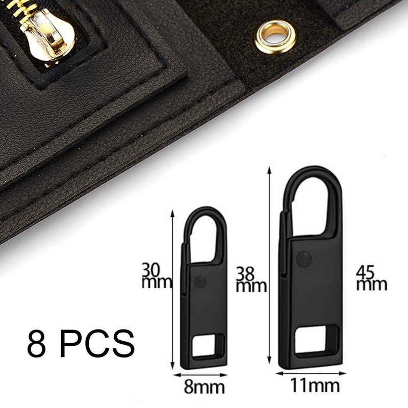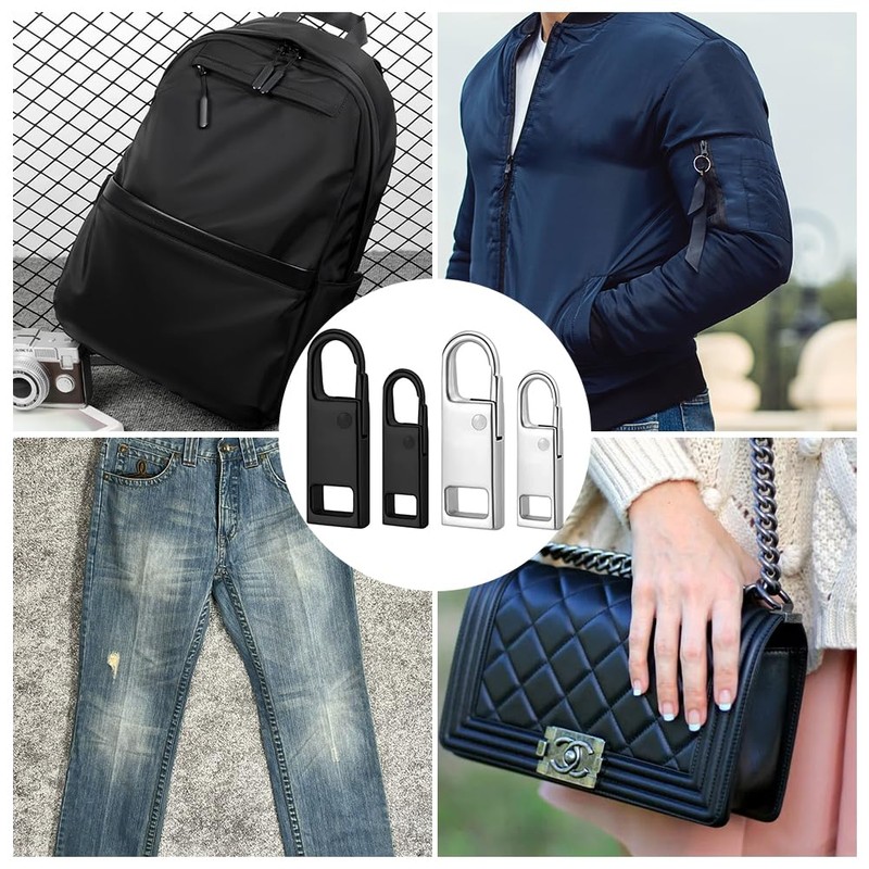 - Zipper Pull Tabs: Zipper pull replacement kit includes 4 large sizes (0.43 x 1.49inch) and 4 small sizes (0.31 x 1.18inch) is a complete set of solutions. Black and silver meet daily matching needs, It is suitable for most zipper head.