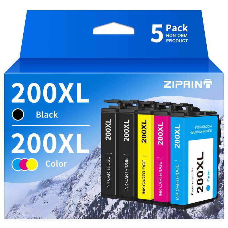 ZIPRINT 200 Ink Cartridge Remanufactured Ink Cartridge Replacement for Epson 200XL T200XL for XP-410 WF-2540 WF-2530 XP-310 XP-400 Printer (2 Black, 1 Cyan, 1Magenta, 1 Yellow) 200XL Ink Combo Pack