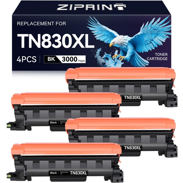 ZIPRINT TN830XL Toner 4 Pack(with chip) Compatible Replacement for Brother tn830 tn 830xl tn830/xl/v tn 830 Toner for HL-L2460DW HL-L2405W DCP-L2640DW MFC-L2820DW MFC-L2900DW HL-L2480DW Printer