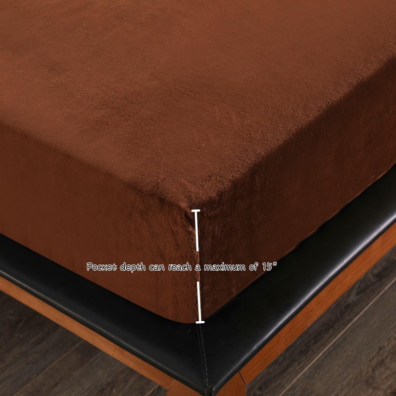 ZIQINPSQ Luxurious Velvet Fitted Sheets,All-Season Milk Plush Bedding,15" Deep Pockets Mattress Protector Cover for a Cozy and Elegant Sleep Experience (Not Include Pillowcases) (Coffee, Queen)