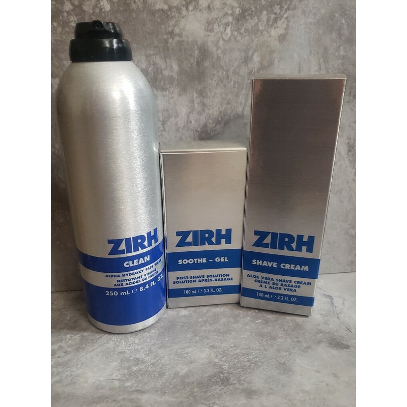 Zirh Shave Basics: Aloe Vera Shave Cream, Sooth-Gel & Alpha-Hydrox Face Wash New.