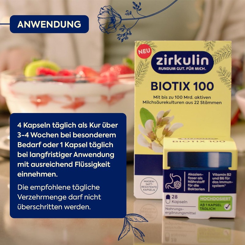 - Clean und Effektiv: Zirkulin Biotix 100 ist ein cleanes Produkt ohne Hilfs- oder Füllstoffe. Bei besonderem Bedarf (z.B. nach einer Antibiotika-Therapie) kann das Produkt auch als Kur eingesetzt werden.