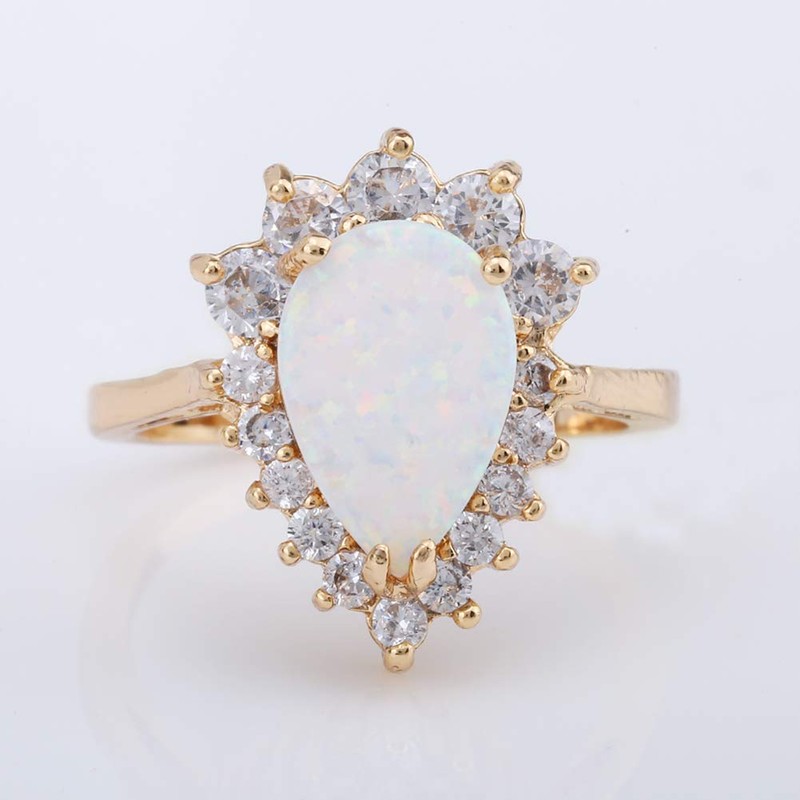 ZIS - Anillo de compromiso chapado en oro de 18 quilates con ópalo de fuego blanco, 27 (9 USA), 1