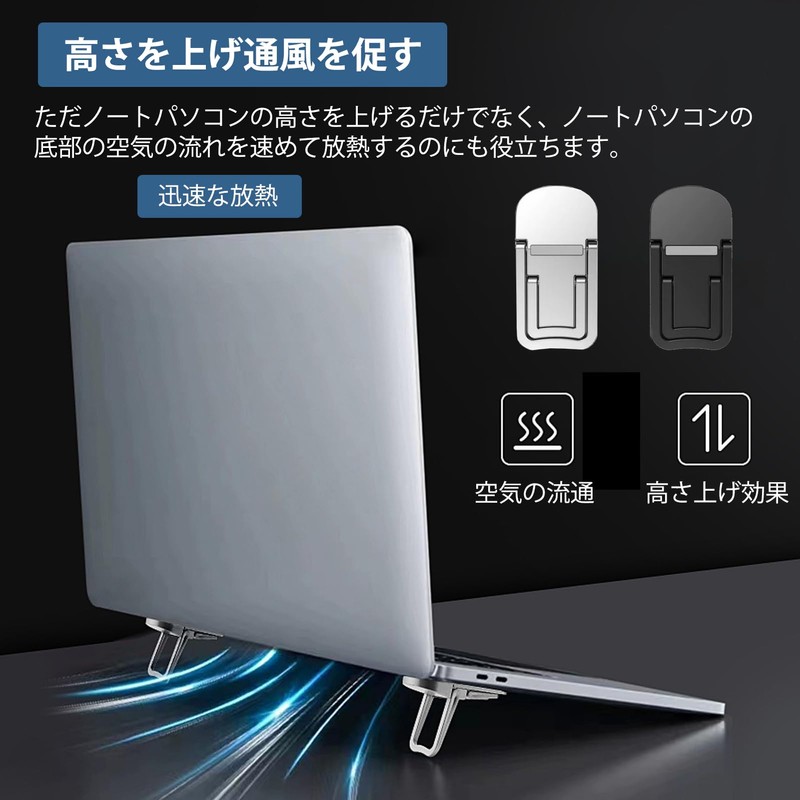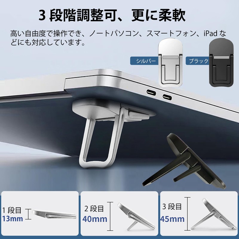 ZiSyouMa Laptop Stand, 2-Pack, 3-Level Adjustment, Foldable, Stick-on Type, Laptop Holder, Macbook, PC Stand, Cooling, Heat Dissipation, Anti-Slip, Lightweight, Easy to Carry (Silver)
