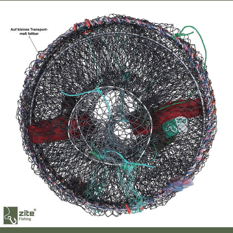 - Easy removal: the second and large zip on the crab trap, eel trap and fish trap allows easy removal of the catch.