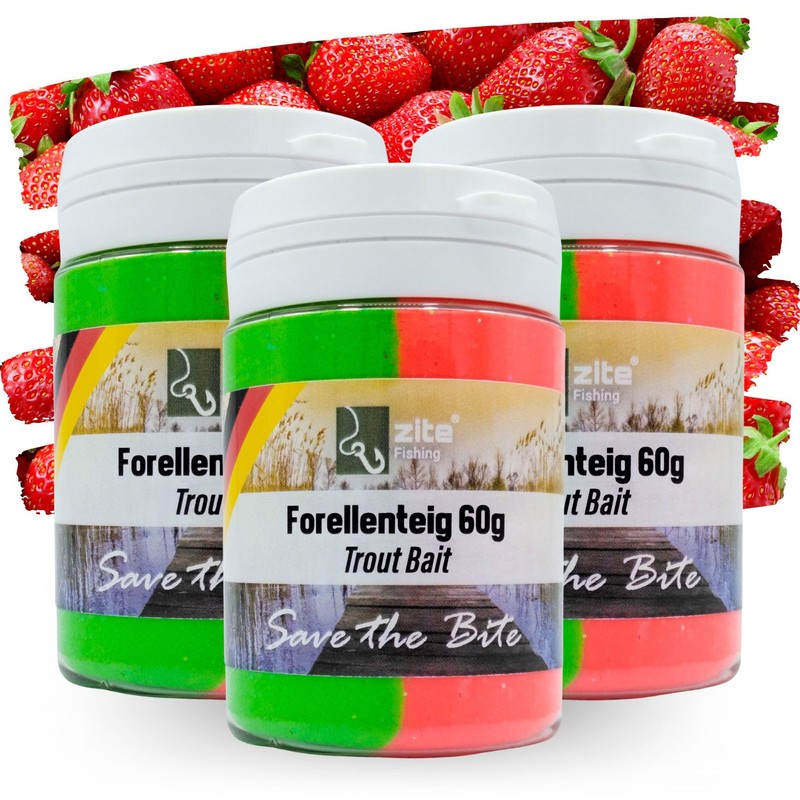 Zite Fishing UV Active Trout Paste Set - 3 x 60 g Special Edition - Trout Dough as Bait Set for Trout Fishing (Strawberry Red/Green)