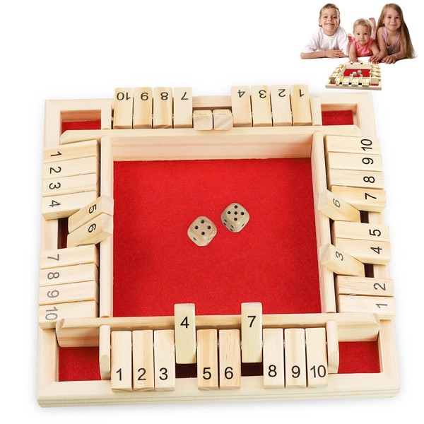 ZITUZY Shut The Box Game, Woods Board Game, Wooden Woods Game, 4 Player Shut The Box Game Dice Game, Suitable for 1 to 4 Players (Red)