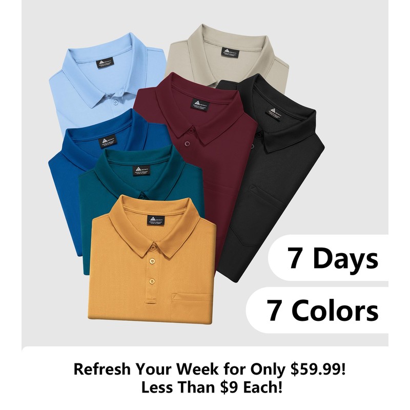 - Occasion: Great value & everyday versatility. Whether you're commuting, golfing, working, or relaxing at home, this 7-pack polo shirts are a customer favorite for its great value and color variety. Stylish enough for business casual, functional enough for outdoor activities