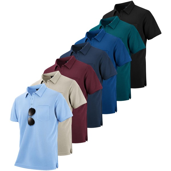 ZITY 7 Pack Mens Polo Shirts with Pocket Moisture Wicking Short Sleeve Outdoor Golf Athletic Work Multipack Shirts