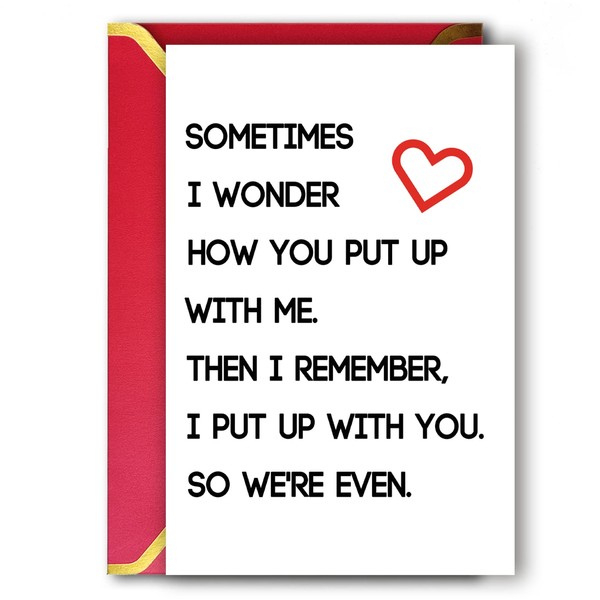 Ziwenhu Happy Valentines Day Gifts for Him Her, Humorous Mens Birthday Vday Wedding Anniversary Card, Sometimes I Wonder How You Put Up With Me…