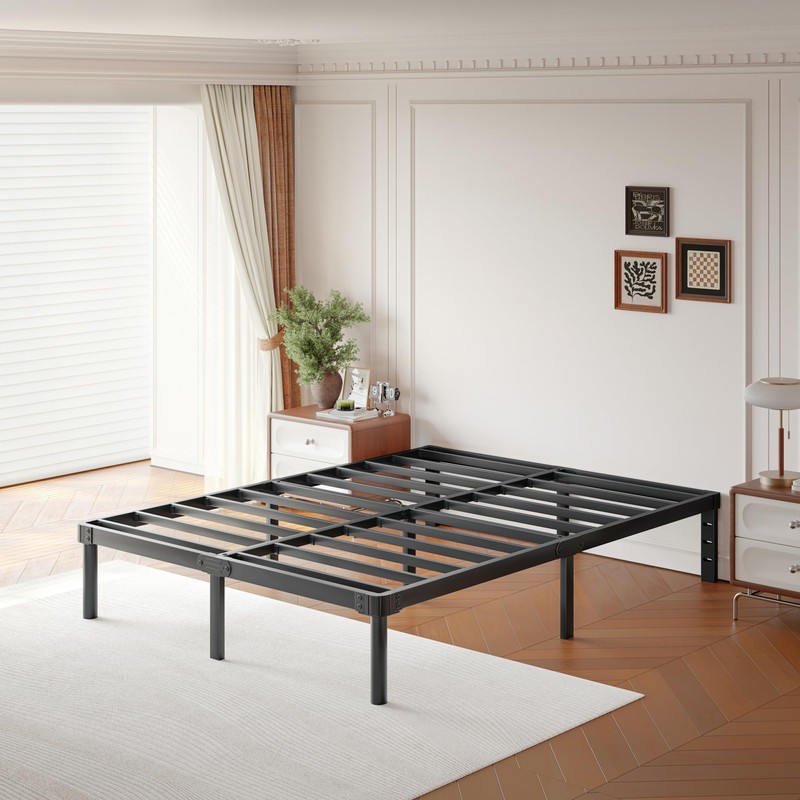 - 【Ample Under-Bed Storage】With 14 inches of clearance, this bed frame offers generous under-bed storage space, perfect for organizing bins, luggage, or seasonal items. It helps maximize your bedroom space while keeping your room clean and clutter-free.