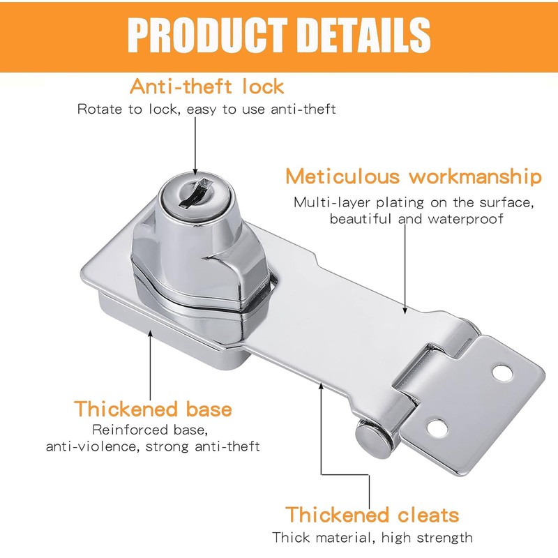 - Material & Size: The lock plate with lock is made of iron-zinc alloy, which is non-toxic, harmless, sturdy and durable, waterproof, rust-proof, high-temperature and corrosion-resistant. High strength and long service life.
