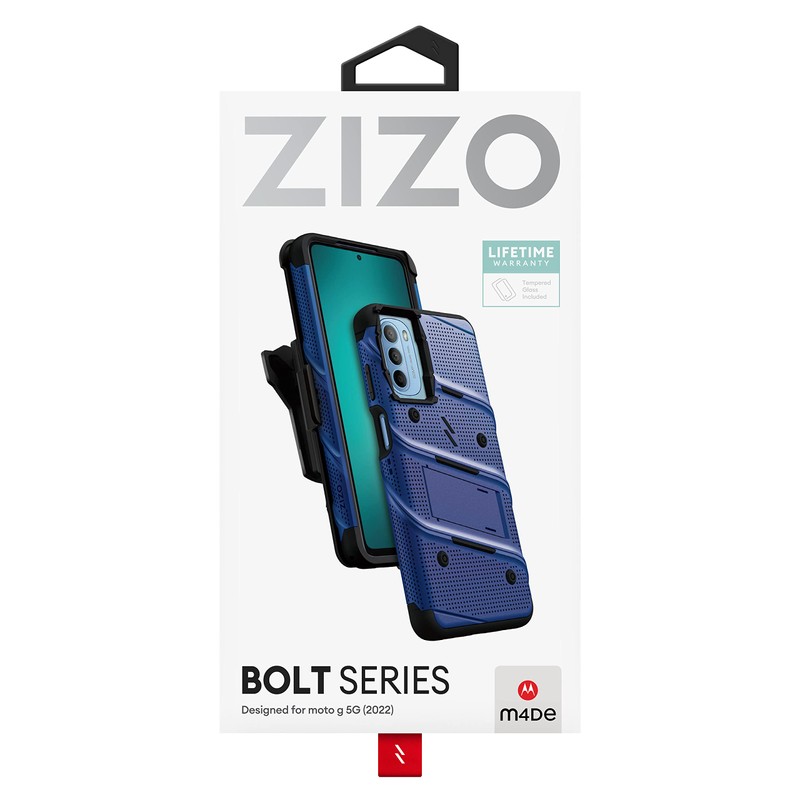 ZIZO Bolt Bundle for Moto g 5G (2022) Case with Screen Protector Kickstand Holster Lanyard - Blue