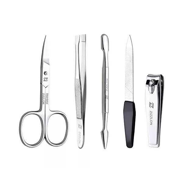 Kit de manicura ZIZZLON, tijeras multiusos para uñas y cejas, pinzas para cejas, cortaúñas, empujador de cutículas, lima de uñas, herramientas de manicura profesionales, regalo para hombres y mujeres Juego de