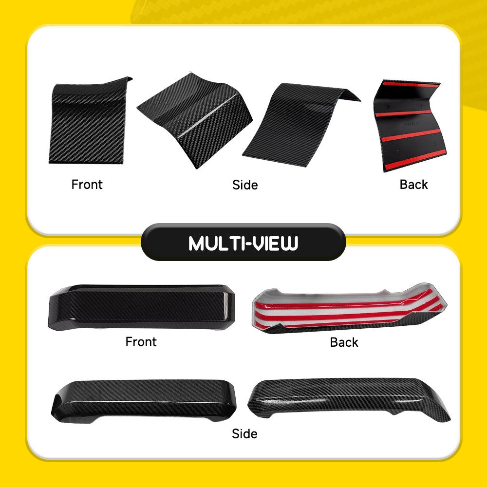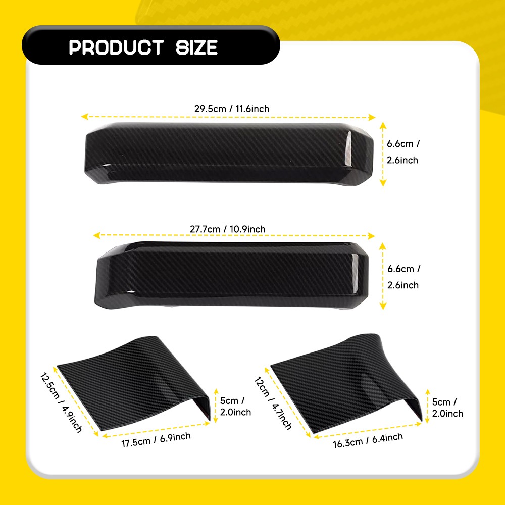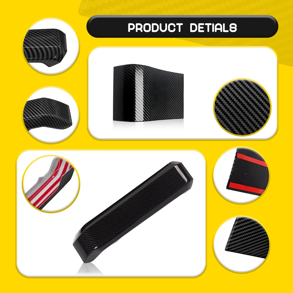 Features: *Stylish Decoration The surface with carbon fiber effect decorates your vehicle to provide an attractive appearance for your car's inside look. *Superior Material Made of high-quality material with high-temperature resistance, wear resistance, anti-aging, and anti-ultraviolet to ensure its high durability. *Easy Installation Comes with tape on the inside of the covers for an easy installation, it is not easy to fall off. *Note: Please wipe the installation location clean and keep it dry before installation.