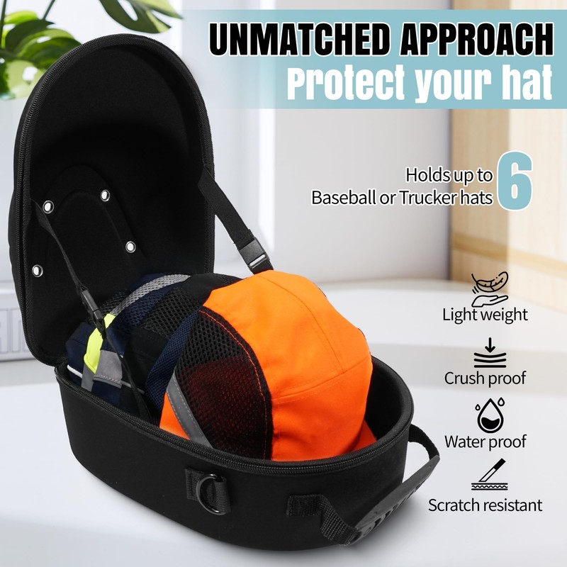 - Durable, Built-to-Last Design – Crafted from high-quality EVA material, this cap carrier is shockproof, water-resistant, and built to last. Your favorite hats will stay safe from dirt, dust, moisture, and impacts, ensuring they remain in top condition for years to come. Whether traveling or storing at home, this case is your hat's best protection.