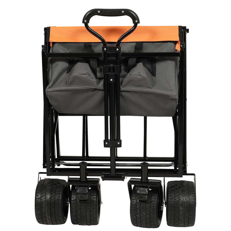 ZJMTOCYU 480Lbs Collapsible Wagon with Canopy, All-Terrain Wheels, Lightweight Foldable Design for Camping and Shopping, Orange with Mosquito Net