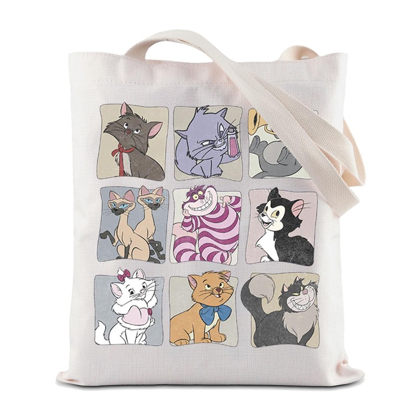ZJXHPO Cartoon Character Tote Bag WDW Reusable Grocery Shopping Bag Cat Lovers Gift Shoulder Bag (M Cat Tote)