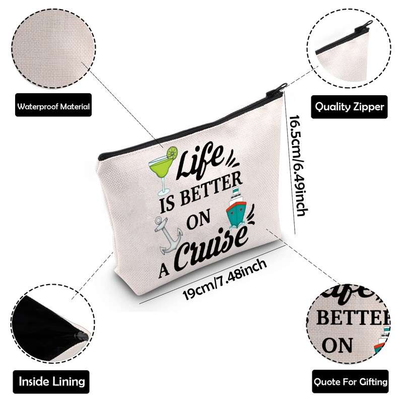- ♥Makeup bag quotes:Life Is Better On A Cruise.