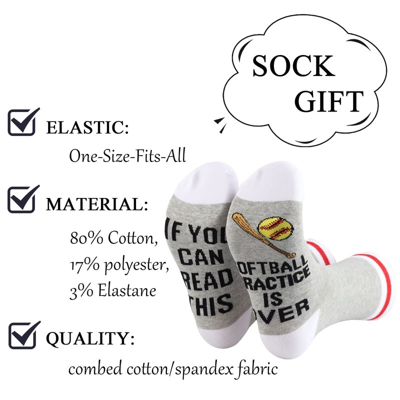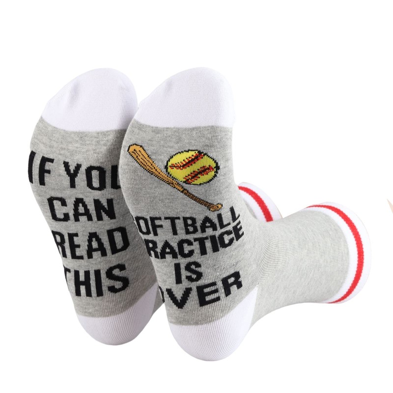 ZJXHPO Softball Crew Sock Softball Player Lover Coach Gift Softball Practice Is Over Novelty Sock Softball Team Gift (C-Read Softball)