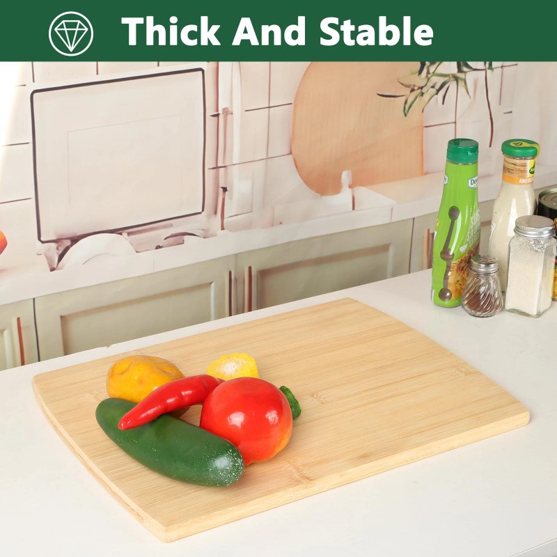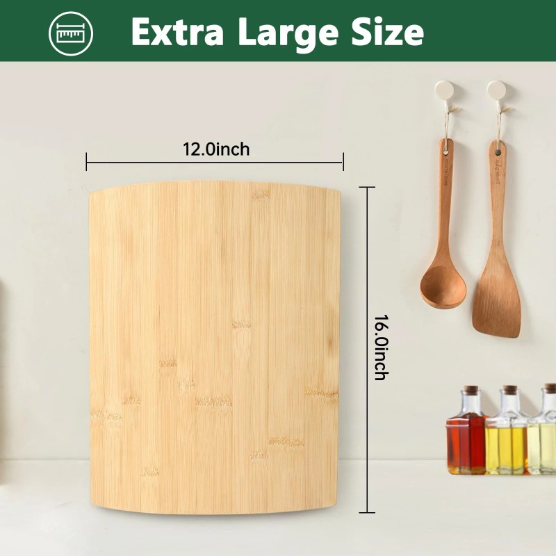 Eco-Friendly Bamboo Cutting Board:Made from sustainable bamboo, ZJYOUZHU's cutting board is a renewable and environmentally-friendly choice. Not only is it sturdy and durable, but it also has a smooth, flat surface without any burrs, cracks, or splinters, and is available in 16"x 12" and 16.5"x13.8" sizes, making it a versatile kitchen essential for all your chopping, meal prep and even serving needs.