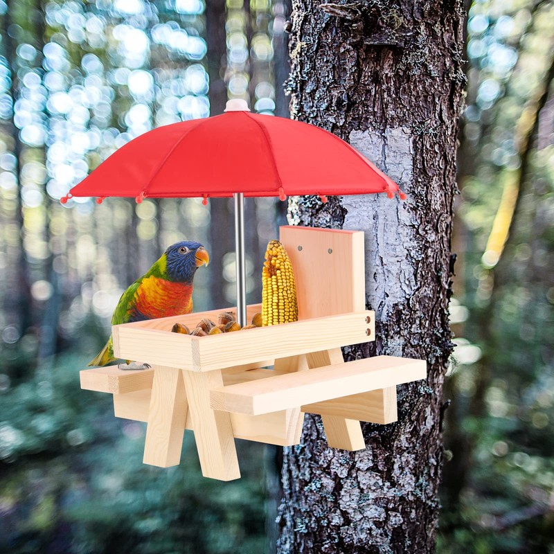 - CUTE: Table shaped feeder with parasol so squirrels or birds can enjoy their meal.
