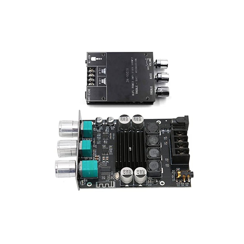 ZK-1002T Bluetooth 5.0 Amplifier Board, 2 x 100W Dual Channel HiFi Subwoofer Audio Amplifier, Digital Power Amplifier Module with Treble and Bass Control, AUX and BT