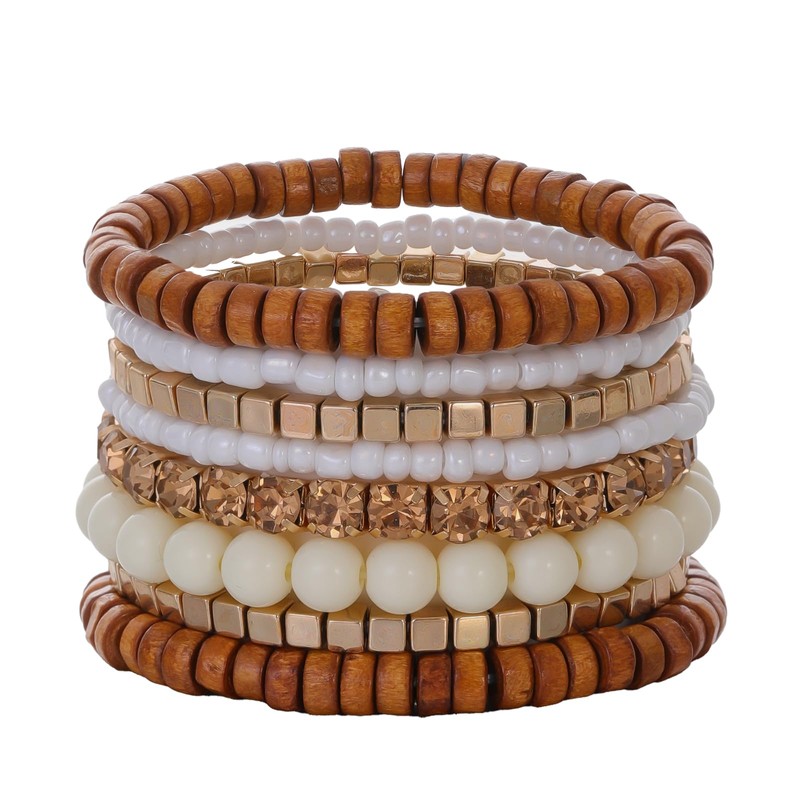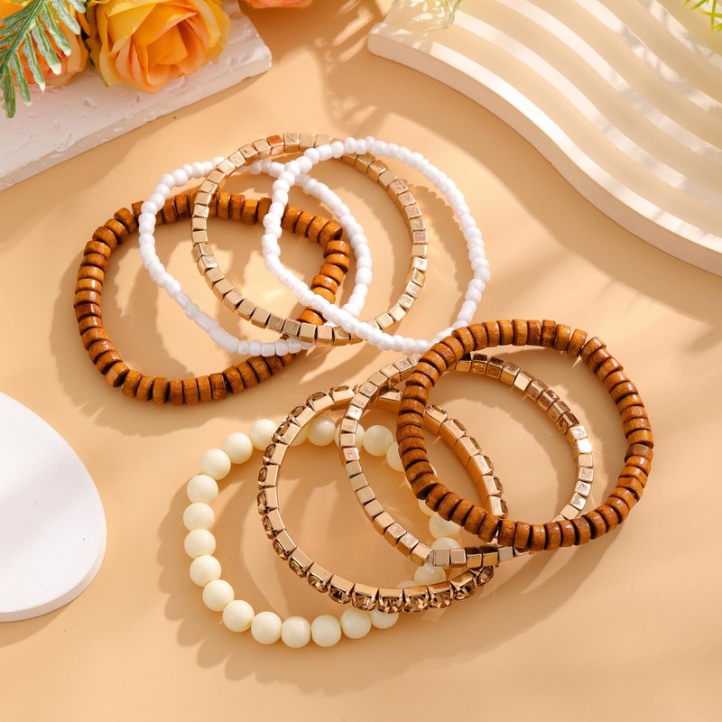 ZKBKJSPZJB 8Pcs Bohemian Beads Bracelets Set Colorful Cube Multi Strand Stretch Stackable Bangle Y2K Bracelet Set (Coffee color)