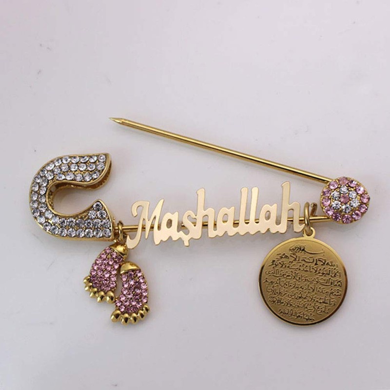 ZKDC AYATUL KURSI Mashallah Turkish evil eye Stainless Steel brooch islam muslim Baby Pin