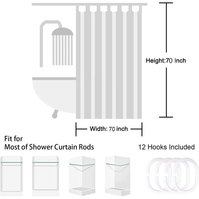 - You will receive: One shower curtain and 12 plastic curtain hooks.