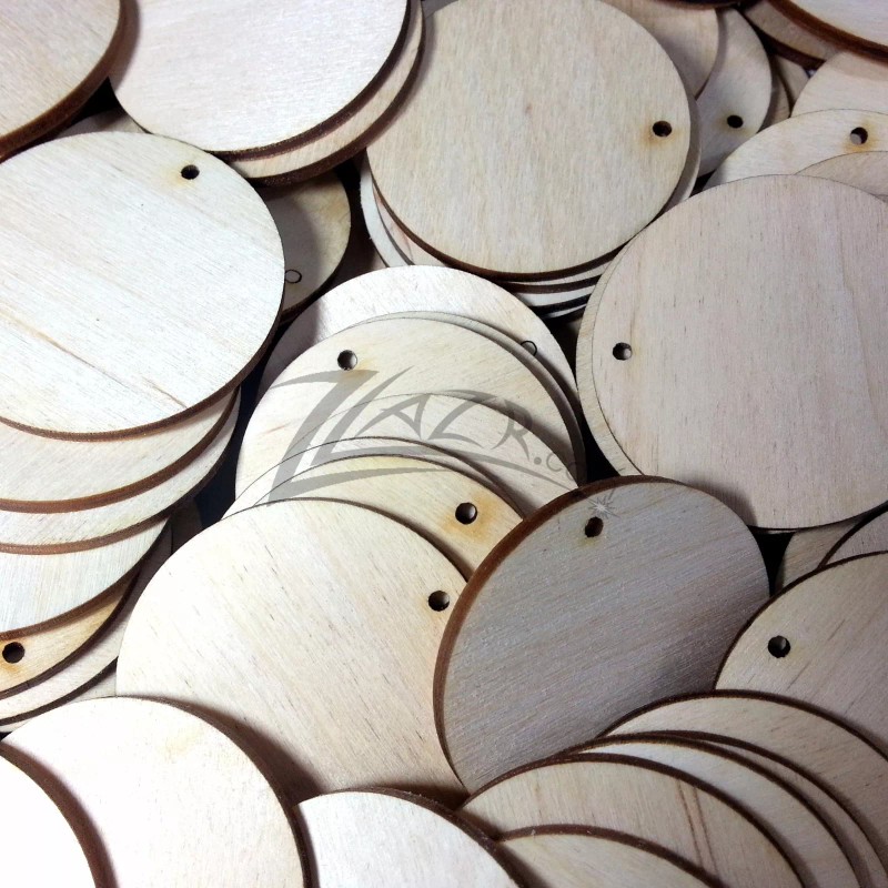 Laser cut wooden circle disc. Includes 25 circle pieces: 1" diameter at 1/8" thickness (approx.) with 1 hole on each disc (top and bottom). These circles are made from a great sturdy real hard plywood material. These are great for adult or kids craft projects, games, scrap-booking or even drawing. They are an unfinished wood and are easy to paint.