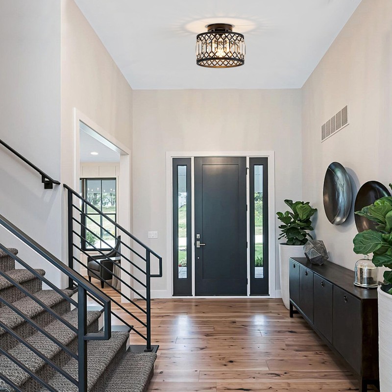 • Distinctive Style: This Crystal Ceiling Light, a striking black chandelier, features a classic black exterior adorned with dazzling crystals. Ideal for hallway entryways, it seamlessly marries modern simplicity and luxurious elegance, instantly elevating the aesthetic of any space.