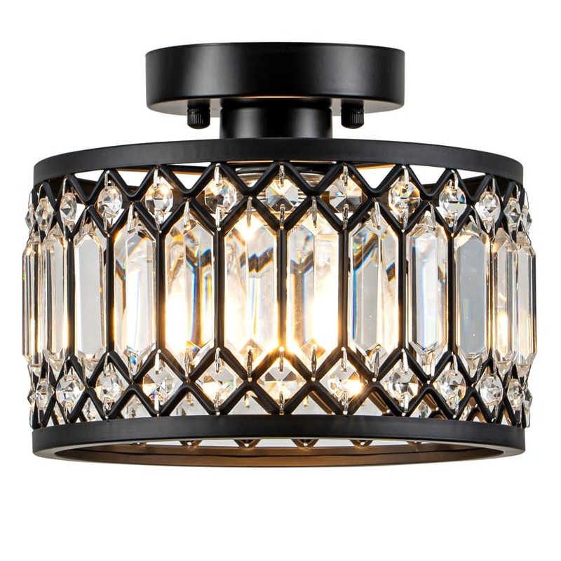Zlepmlla Crystal Ceiling Light, Black Flush Mount Ceiling Light Fixture, Flus...