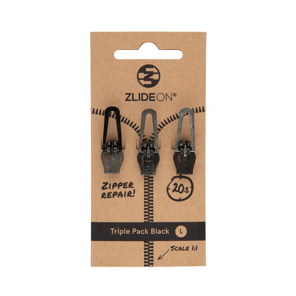 ZlideOn Zip Replacement – Pack of 3, Black, Large – Instant Zip Slider Multipack