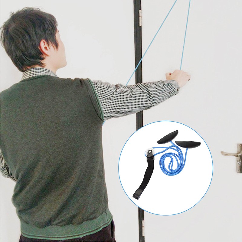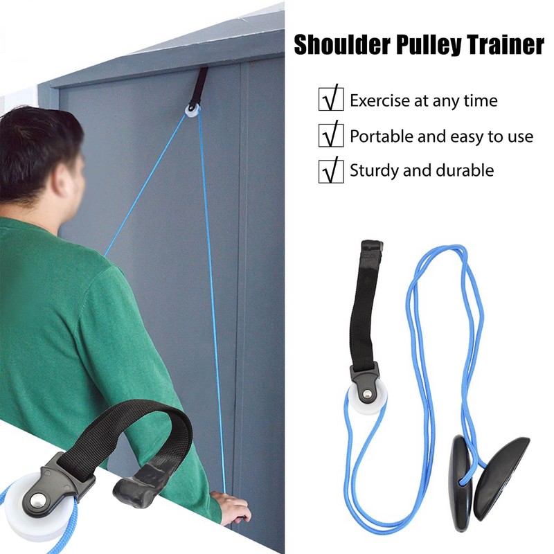- Our shoulder pulley consists of a door anchor, pulley, pull rope and two handles. The door anchor is clamped between the door and the frame and is ready for use.