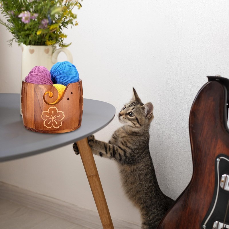 - 🌿【Unique Design】Made from natural pine wood, this yarn bowl features a detail texture and wood aroma. The flower design patterns making it not only functional but also very beautiful. The simple, round shape suits any home décor style.
