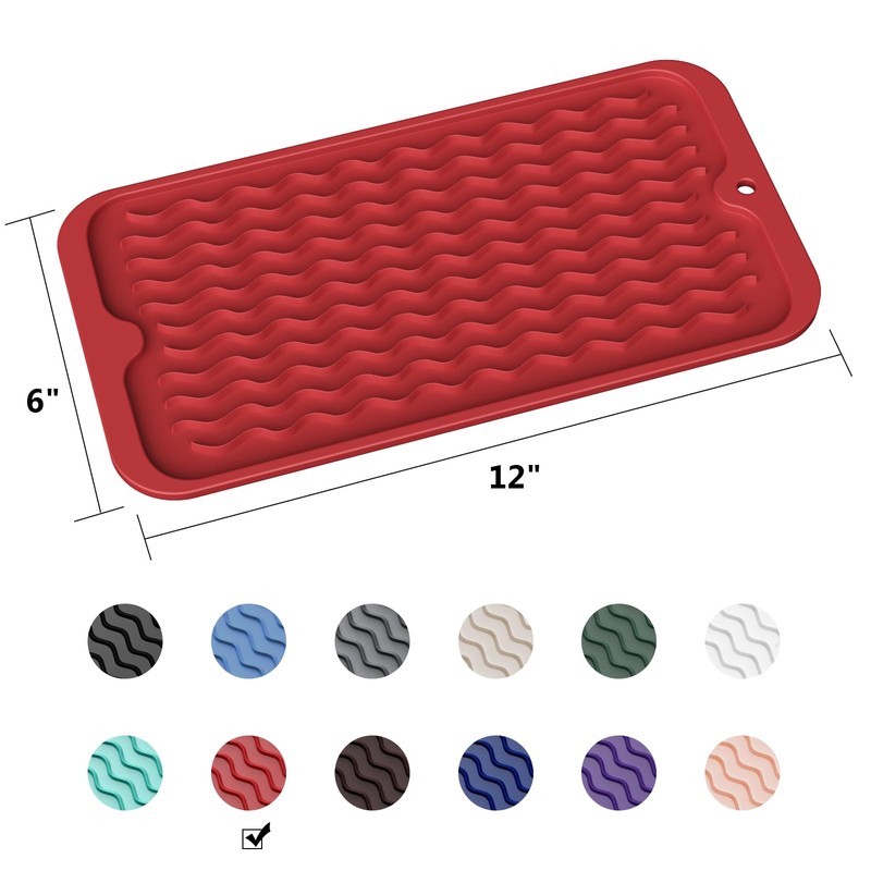 - Variety of Colors and Sizes: This drying mat is Lave Red, and its size is 12"L x 6"W. Brighten your kitchen with our vibrant selection of colors and sizes. Whether you prefer classic neutrals or bold hues, find the perfect drying mat to fit your countertop and style.
