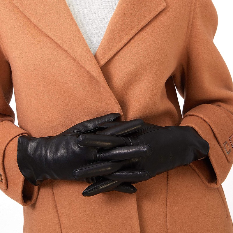 ZLUXURQ Luxury Italian Soft Leather Gloves for Women in Black - Genuine SheepSkin Leather Women’s Cold Weather Gloves Cashmere Lined