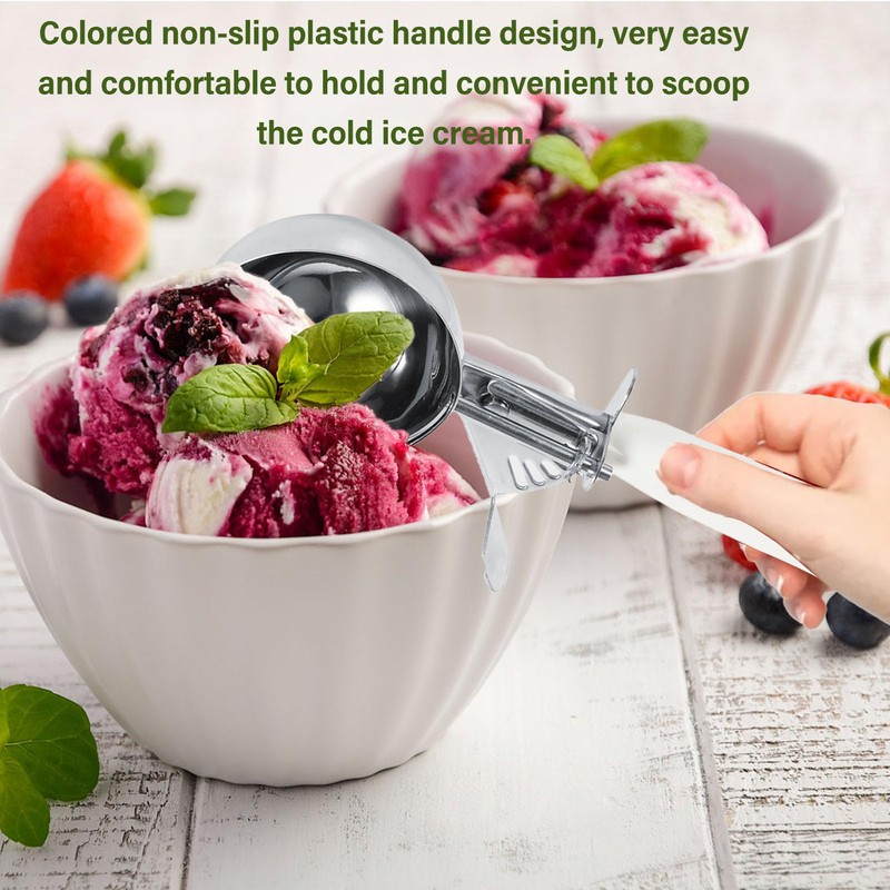 - VERSATILE USE FOR VARIOUS FOODS This ice cream scoop is not only suitable for ice cream, but also for mashed potatoes, fruits, cookie dough and more. Ideal for use in cafes, bars, restaurants and at home.